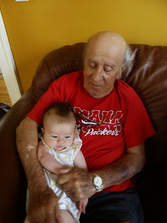 We also spent 2 weeks in Nebraska with Nana and Grandpa. Ava met her Great Grandpa Zendejas, They both didn't stay still for a picture and the one where they are both looking down was the best one of them that I got!